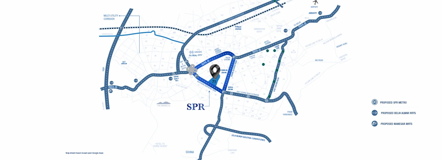 In the heart of Gurugram's Sector 71 lies our esteemed project. This vibrant area has captured the spotlight, buzzing with excitement thanks to its expansive road networks, ongoing infrastructure enhancements, and the active involvement of real estate developers. Centrally positioned, it offers easy access to premier schools, hospitals, hotels, convention centers, IT hubs, and malls, enhancing its allure and charm. Your life here is exceptionally well-connected through five major road networks.